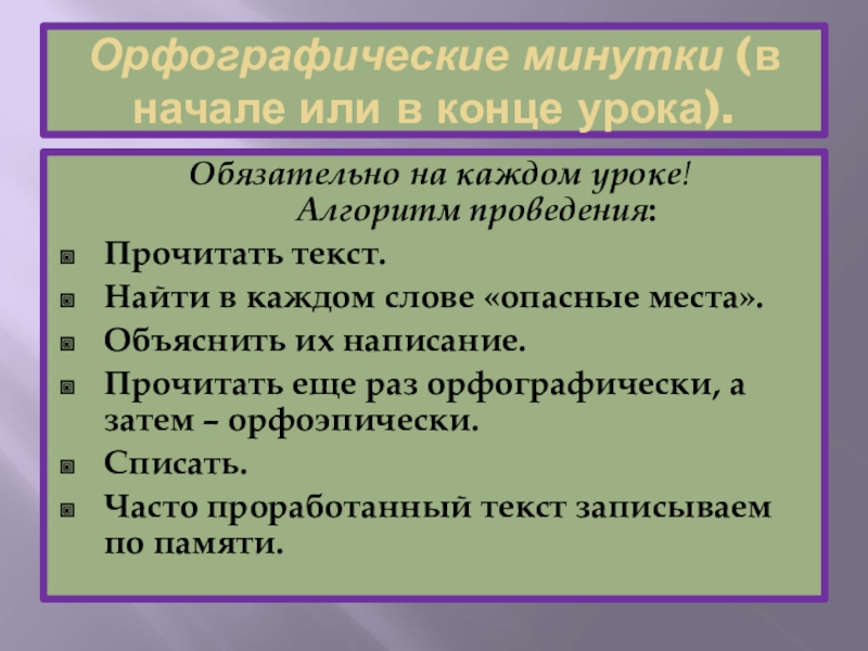 Орфографические минутки (в начале или в конце урока).