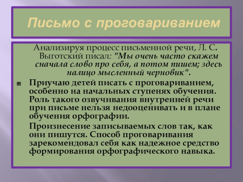 Анализируя процесс письменной речи, Л. С. Выготский писал: