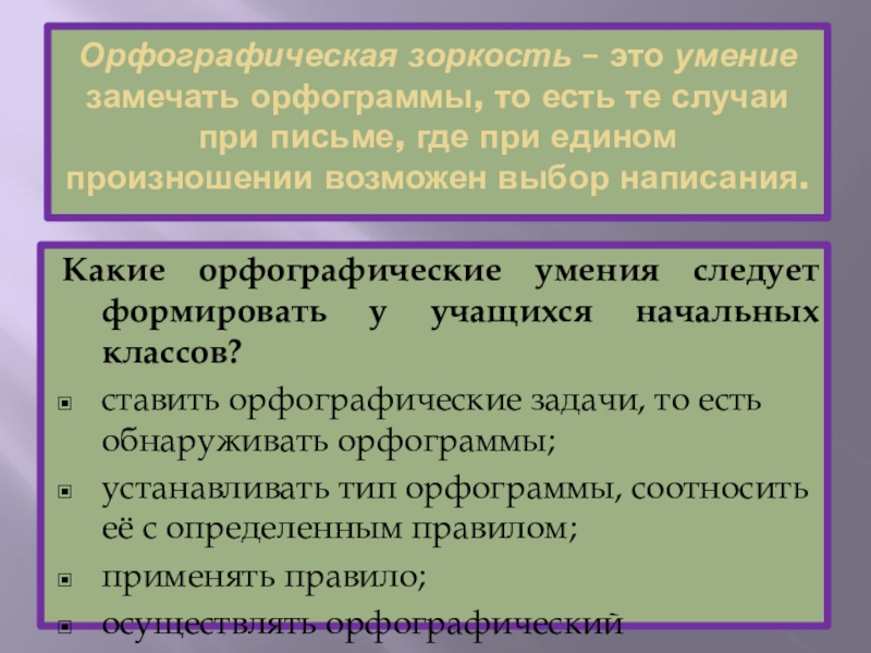 Орфографическая зоркость – это умение замечать орфограммы, то есть те случаи при