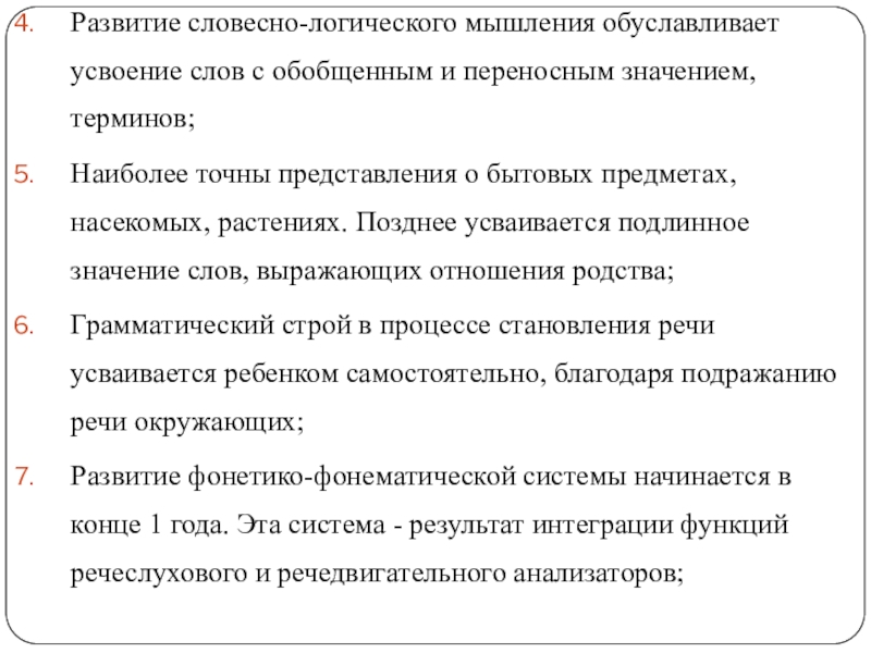 Ребенок начинает слышать звуки в соответствии с их смыслоразличительными признаками. Сосуществование 2 типов языкового фона: косноязычного и формирующего нового