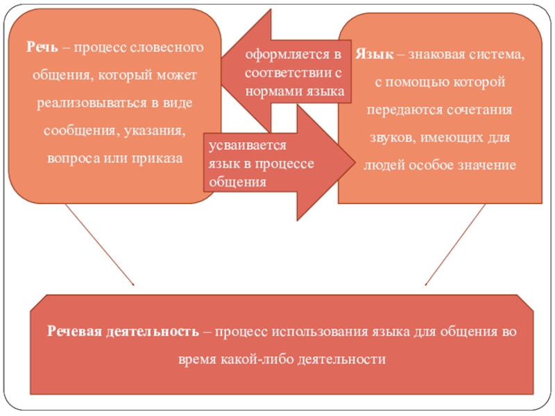 Речь – процесс словесного общения, который может реализовываться в виде сообщения, указания, вопроса или приказа