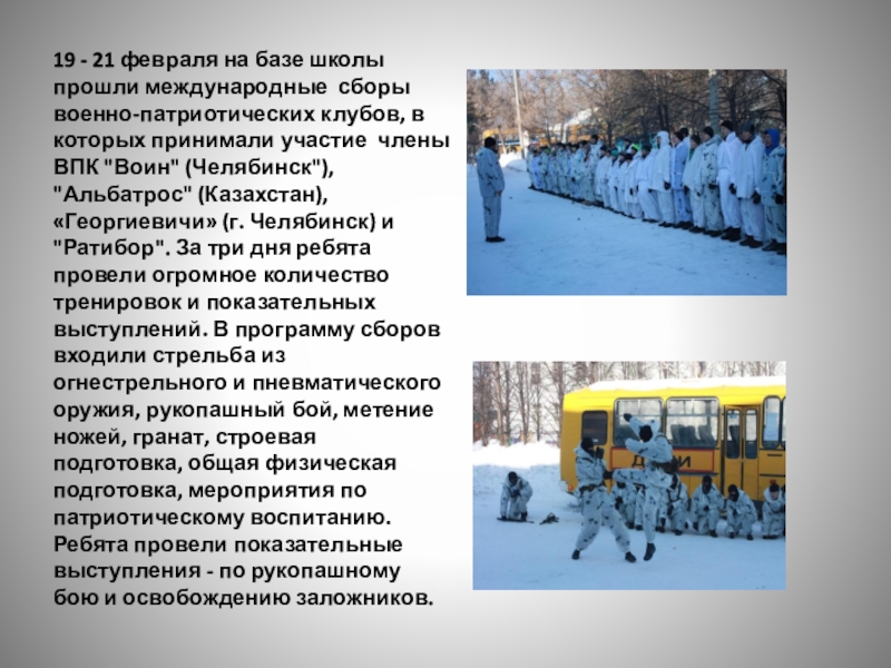 Слайд 1419 - 21 февраля на базе школы прошли международные сборы военно-патриотических