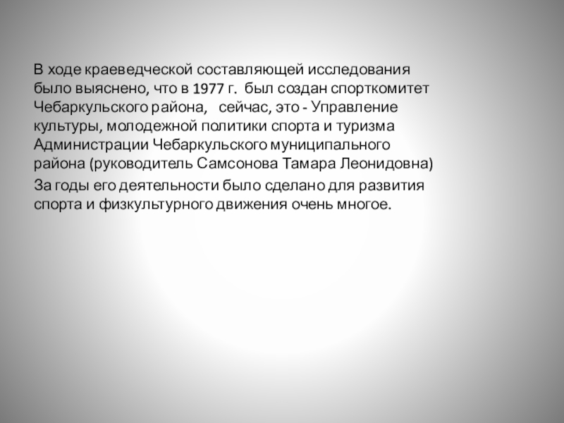 Слайд 5В ходе краеведческой составляющей исследования было выяснено, что в 1977 г.