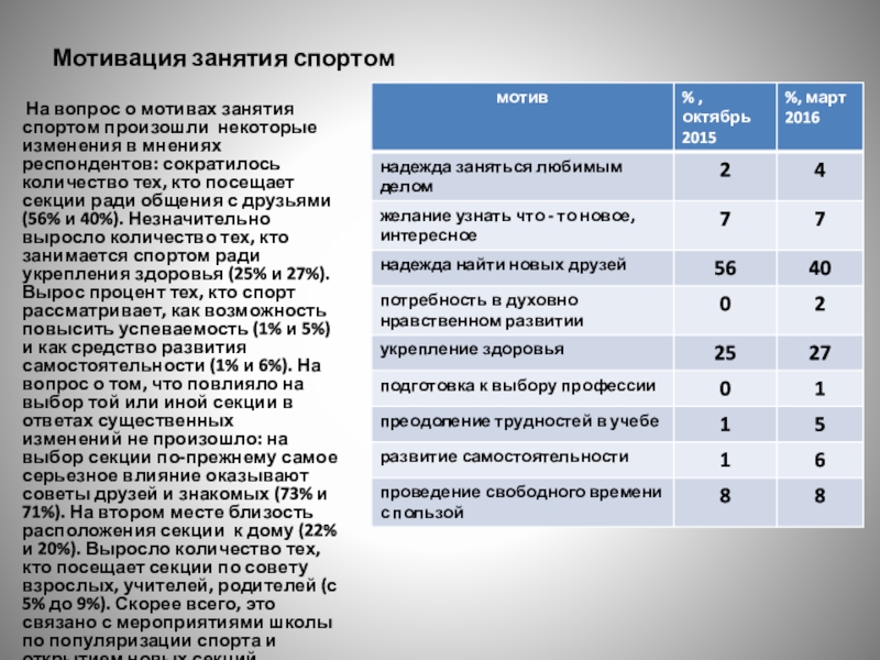 На вопрос о мотивах занятия спортом произошли некоторые