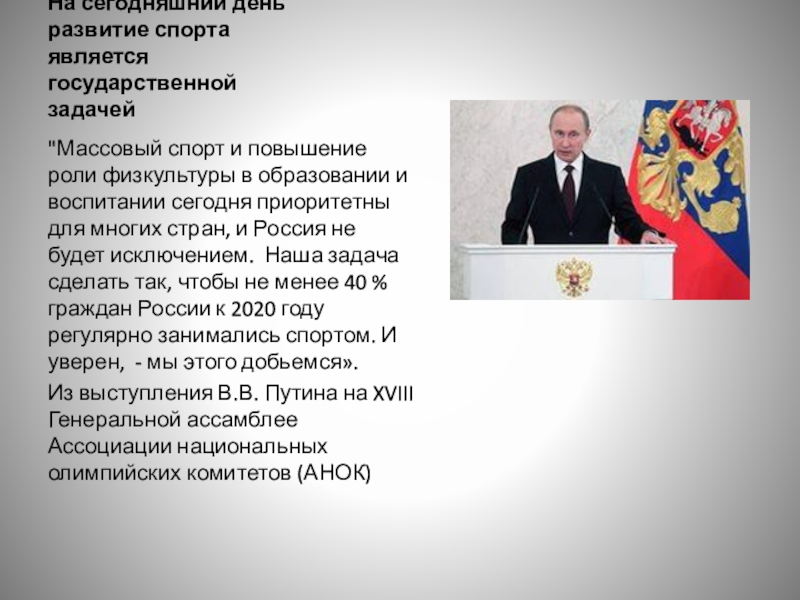 Из выступления В.В. Путина на XVIII Генеральной ассамблее Ассоциации национальных олимпийских комитетов (АНОК)