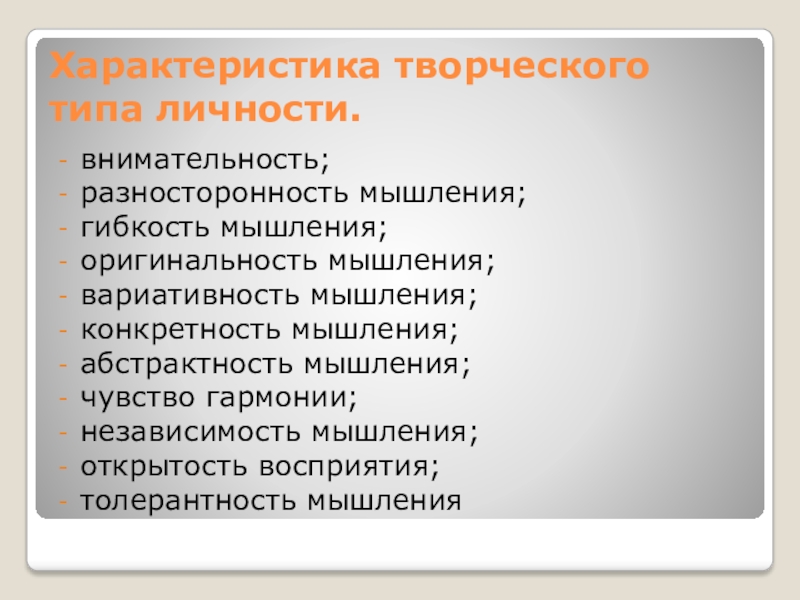 Аналитические компоненты - соответственно понятийно- логическое мышление - логичность, подвижность, избирательность, ассоциативность, сообразительность, способность дифференцировать и т.д.;