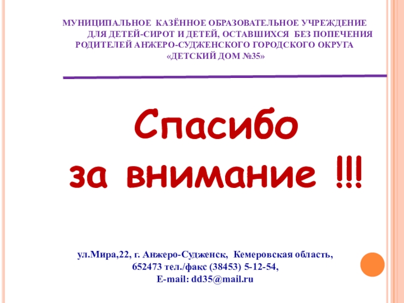 ДЛЯ ДЕТЕЙ-СИРОТ И ДЕТЕЙ, ОСТАВШИХСЯ БЕЗ ПОПЕЧЕНИЯ РОДИТЕЛЕЙ АНЖЕРО-СУДЖЕНСКОГО ГОРОДСКОГО ОКРУГА