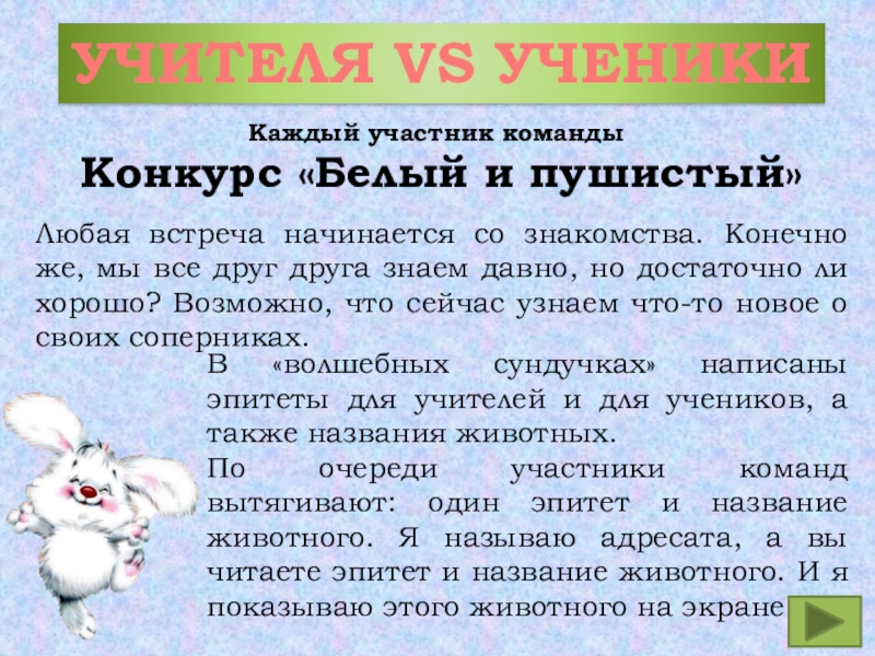 Любая встреча начинается со знакомства. Конечно же, мы все друг друга знаем давно, но достаточно ли хорошо? Возможно, что сейчас узнаем что-то новое о своих соперниках.