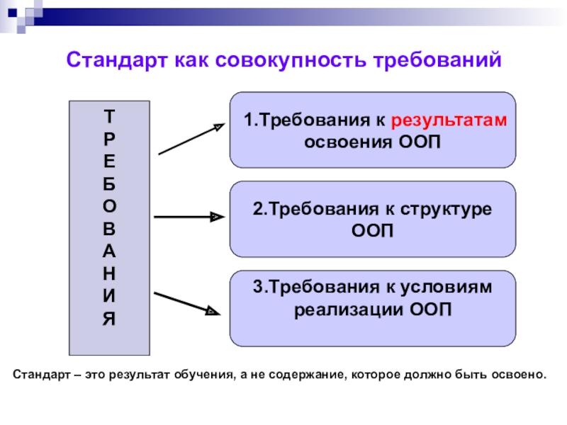 Стандарт – это результат обучения, а не содержание, которое должно быть освоено.