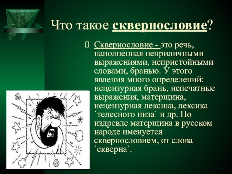 Слайд 8Матерная брань это не только набор непристойностей. Подобная лексика свидетельствует о