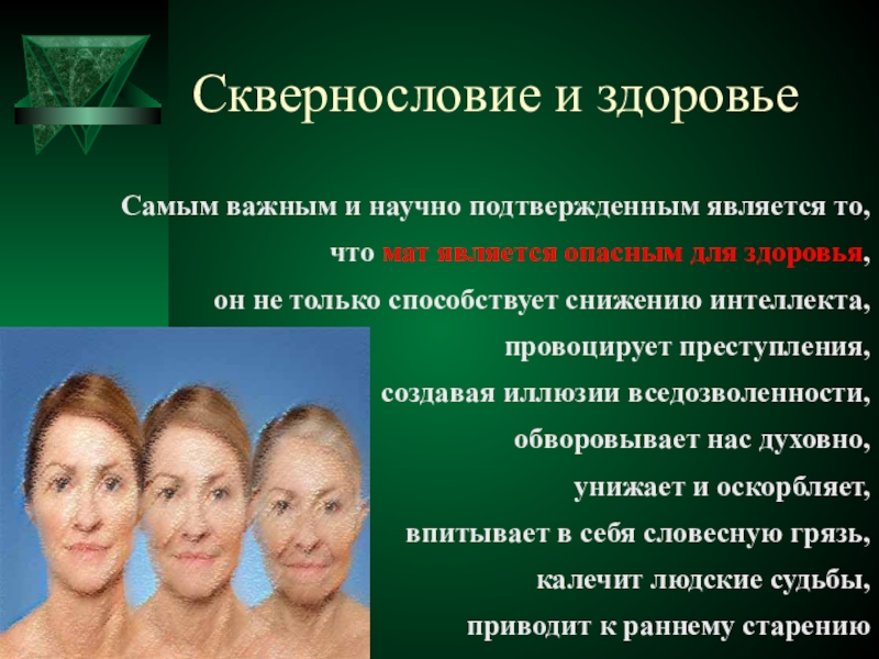 Слайд 26Сквернословие наносит вред не только духовному, но и физическому здоровью человека.