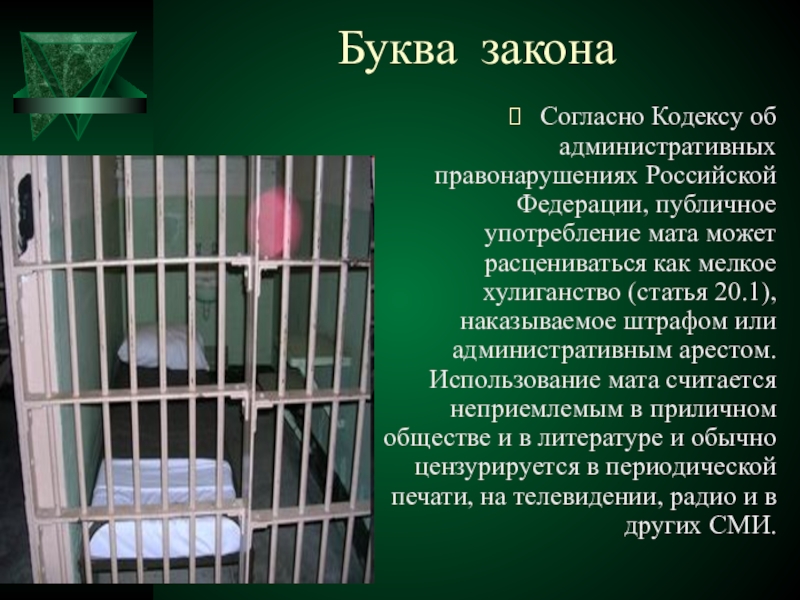Согласно Кодексу об административных правонарушениях Российской Федерации, публичное употребление мата