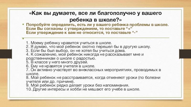 8. Мой ребенок не расстраивается, когда отменяют уроки (по болезни учителя или др. причине).