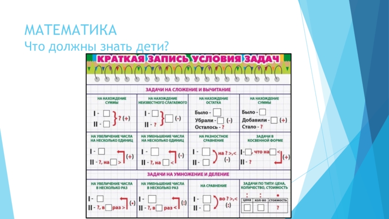 Слайд 16МАТЕМАТИКА Что должны знать дети?