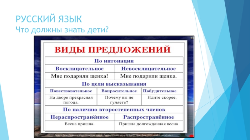 Слайд 11РУССКИЙ ЯЗЫК Что должны знать дети?