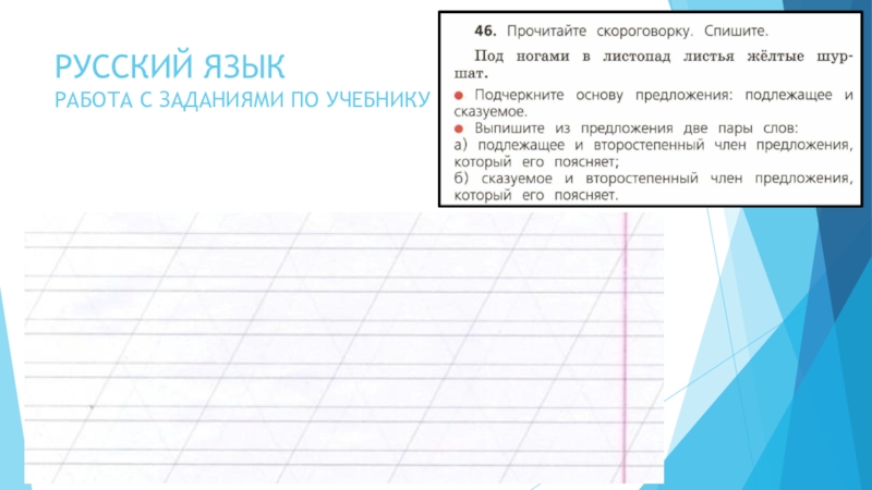 Слайд 3РУССКИЙ ЯЗЫК РАБОТА С ЗАДАНИЯМИ ПО УЧЕБНИКУ