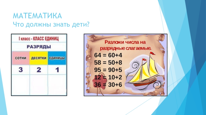 Слайд 18МАТЕМАТИКА Что должны знать дети?