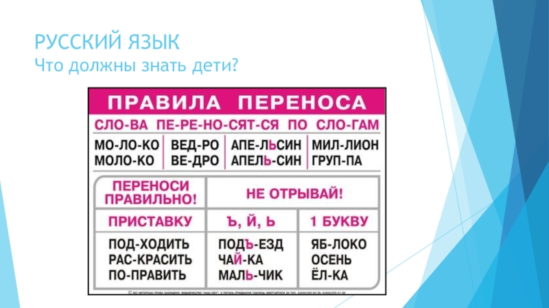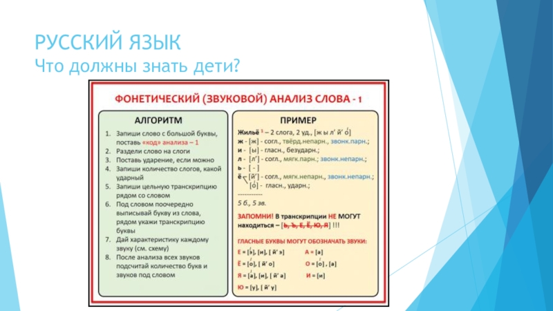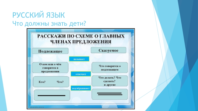 Слайд 8РУССКИЙ ЯЗЫК Что должны знать дети?