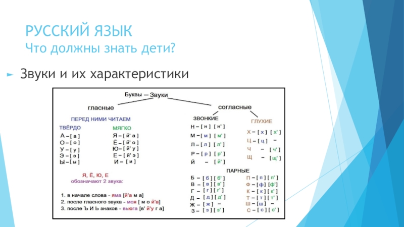 РУССКИЙ ЯЗЫК Что должны знать дети?Звуки и их характеристики