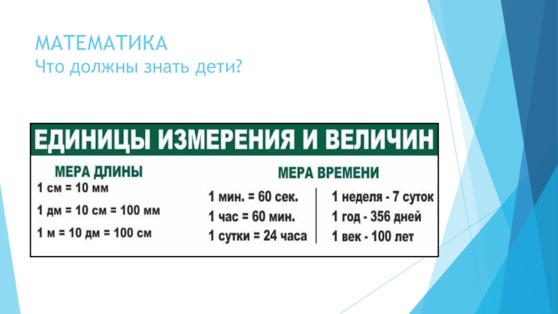 Слайд 19МАТЕМАТИКА Что должны знать дети?