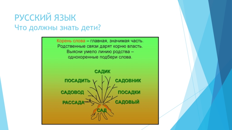 Слайд 9РУССКИЙ ЯЗЫК Что должны знать дети?