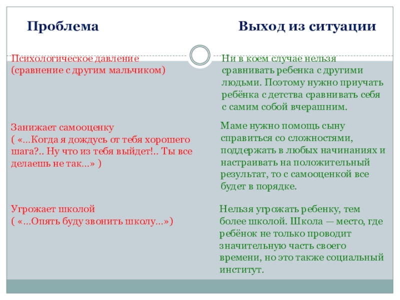 Нельзя угрожать ребенку, тем более школой. Школа — место, где ребёнок не только проводит значительную часть своего времени, но это также социальный институт.