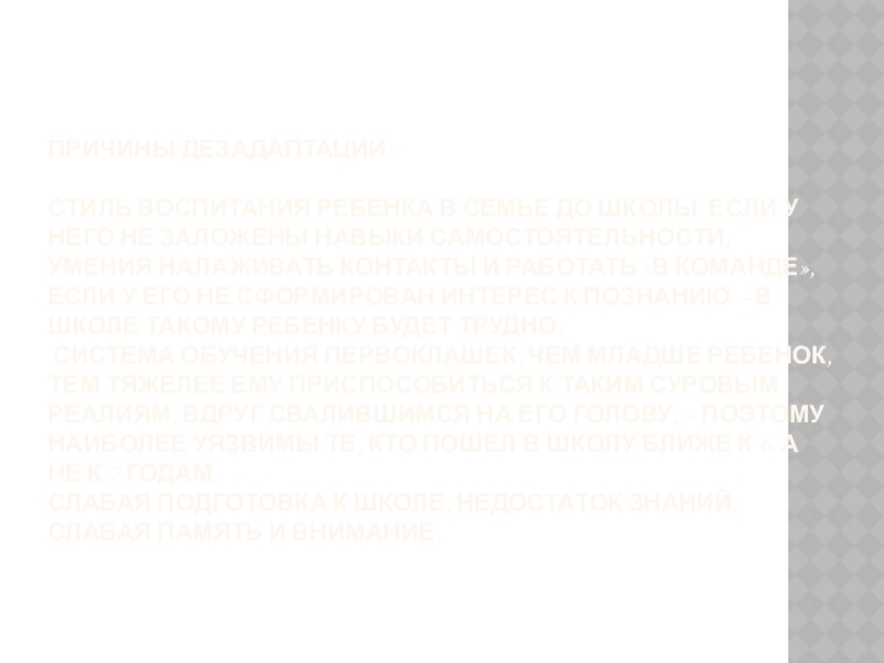 Слайд 7Причины дезадаптации: