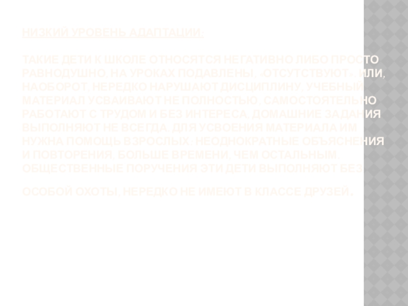 Слайд 5Низкий уровень адаптации: