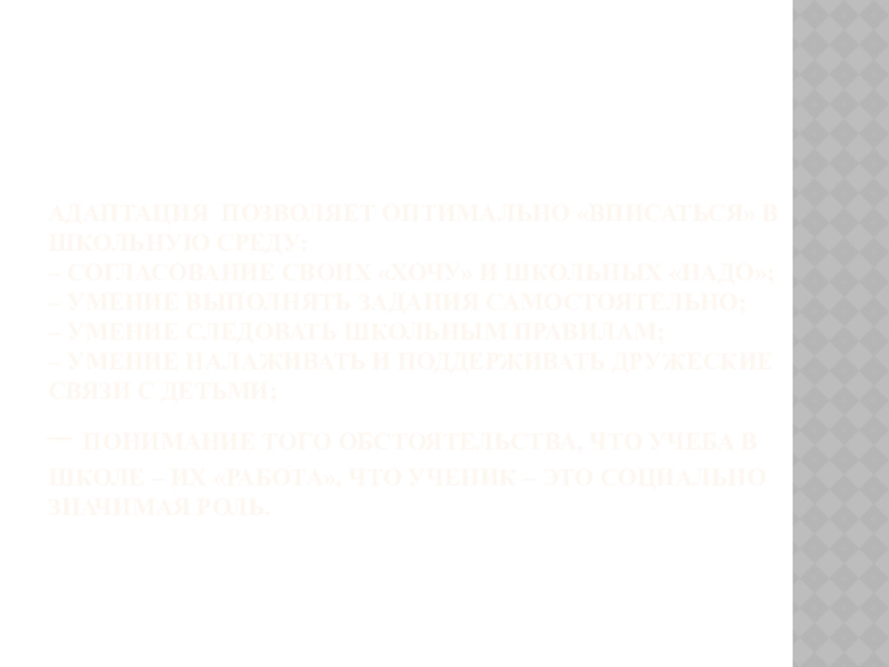 Слайд 3Адаптация позволяет оптимально «вписаться» в школьную среду: