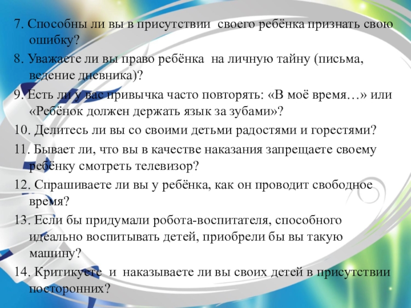 7. Способны ли вы в присутствии своего ребёнка признать свою ошибку?