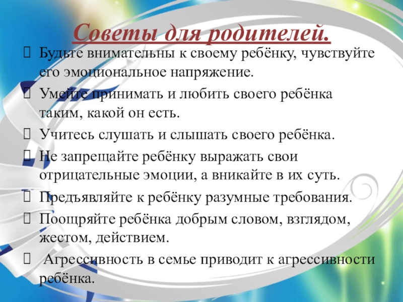 Будьте внимательны к своему ребёнку, чувствуйте его эмоциональное напряжение.