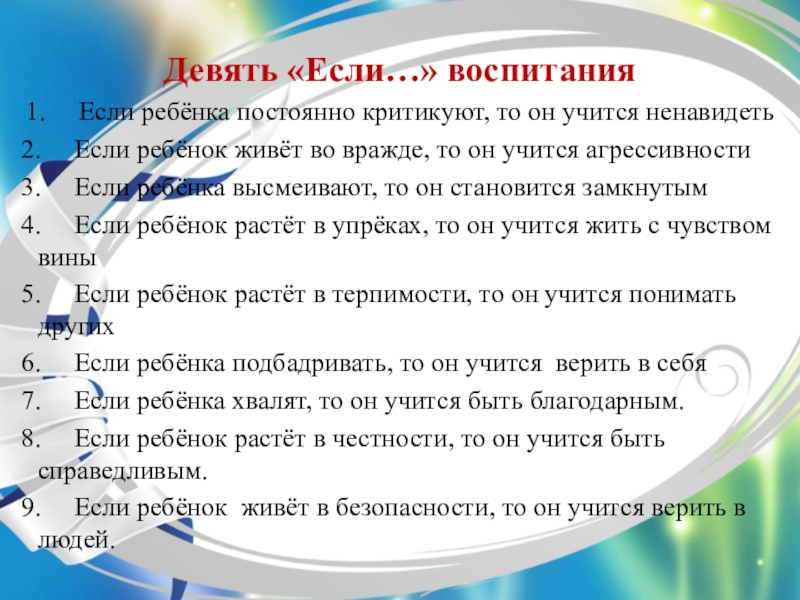 9. Если ребёнок живёт в безопасности, то он учится верить в людей.