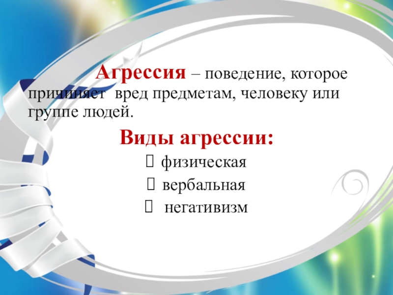 Агрессия – поведение, которое причиняет вред предметам, человеку или группе людей.