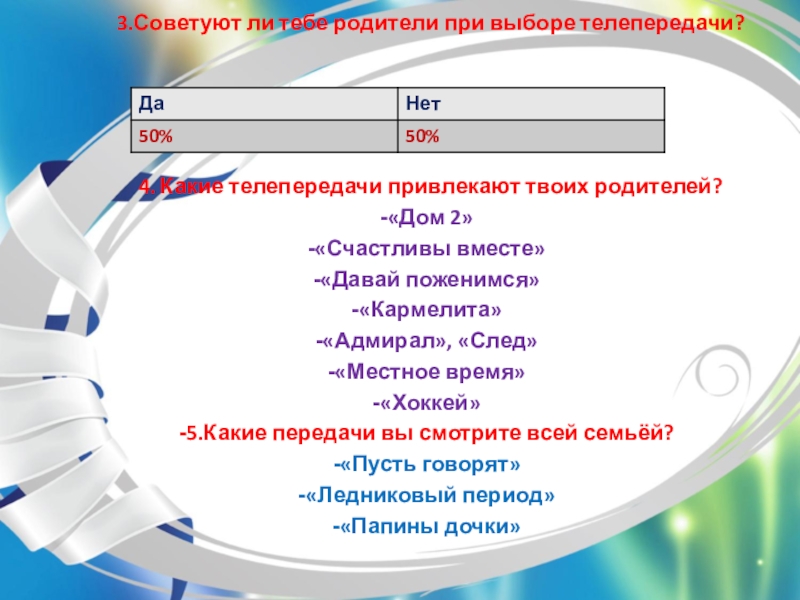 Слайд 113.Советуют ли тебе родители при выборе телепередачи?