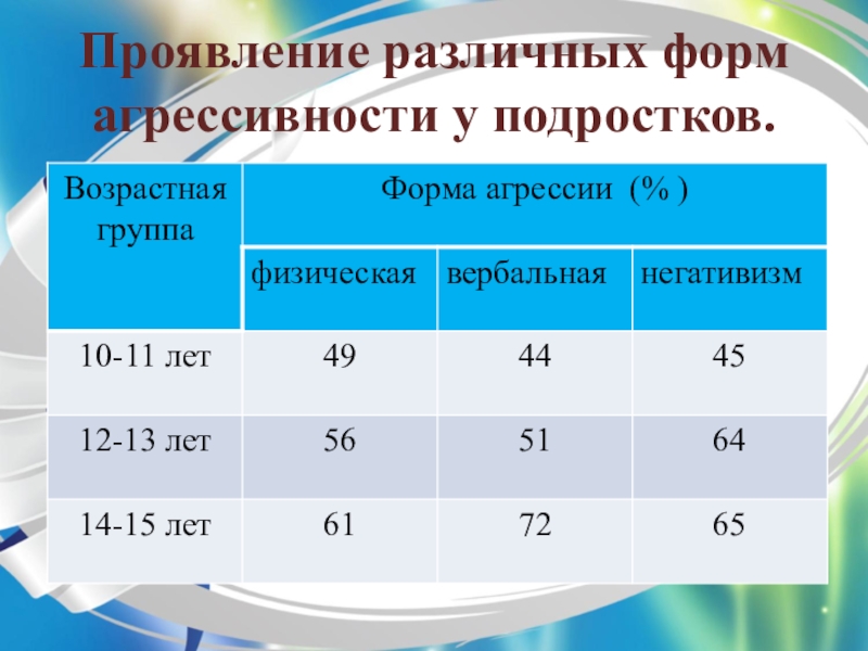 Слайд 4Проявление различных форм агрессивности у подростков.