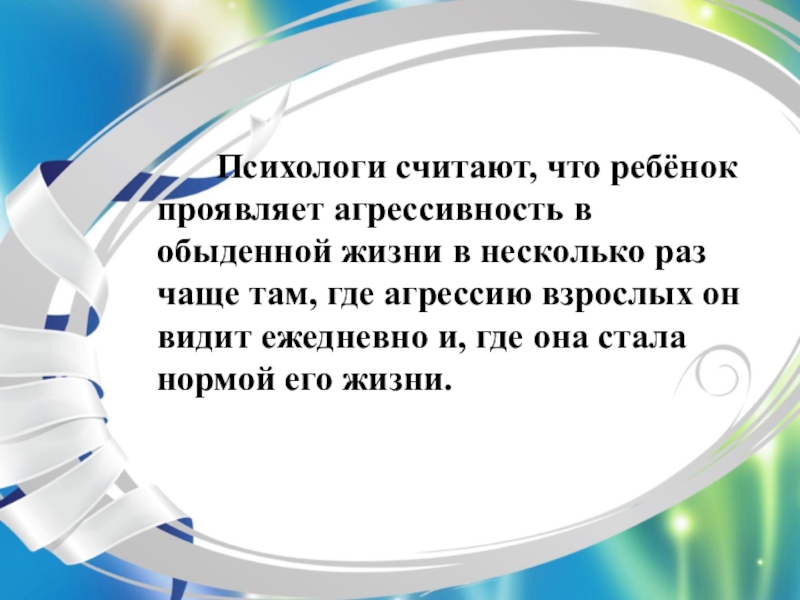 в обыденной жизни в несколько раз чаще там, где агрессию взрослых он видит ежедневно и, где она стала нормой его жизни.