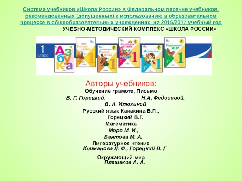 Слайд 33Система учебников «Школа России» в Федеральном перечне учебников, рекомендованных (допущенных) к