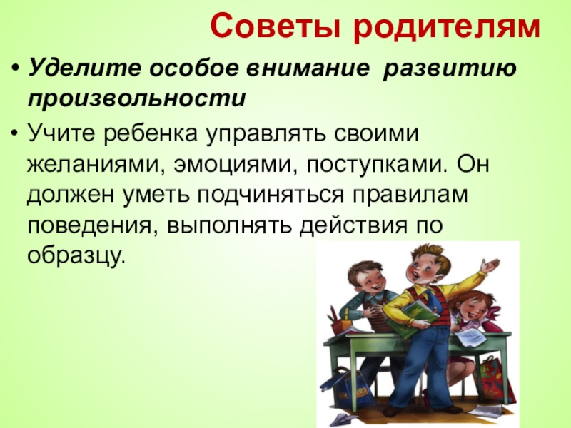 поступками. Он должен уметь подчиняться правилам поведения, выполнять действия по образцу.