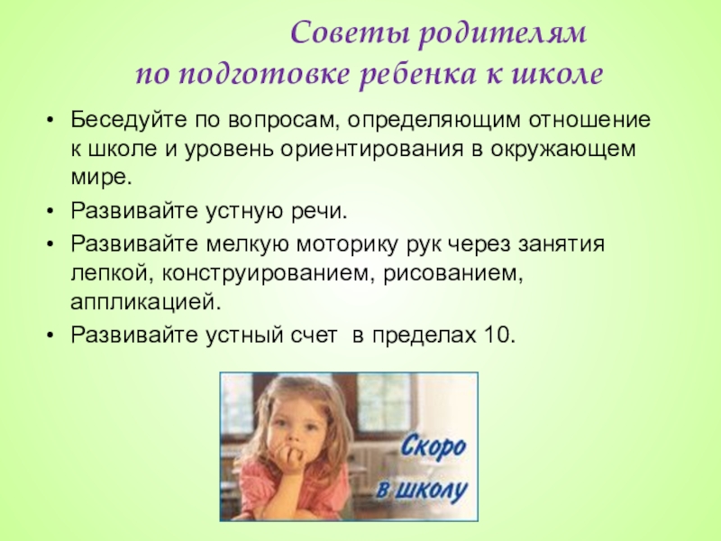 Беседуйте по вопросам, определяющим отношение к школе и уровень ориентирования в окружающем мире.