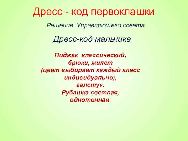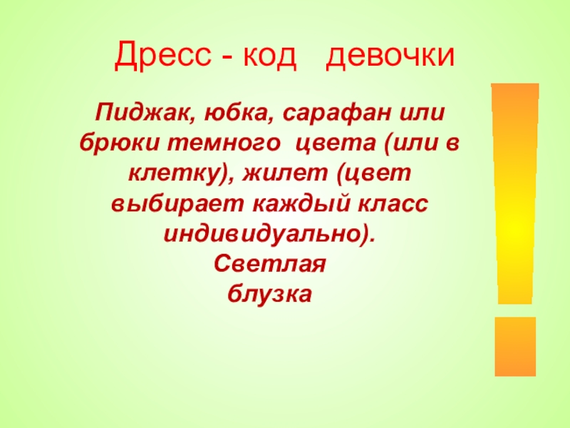 (или в клетку), жилет (цвет выбирает каждый класс индивидуально).