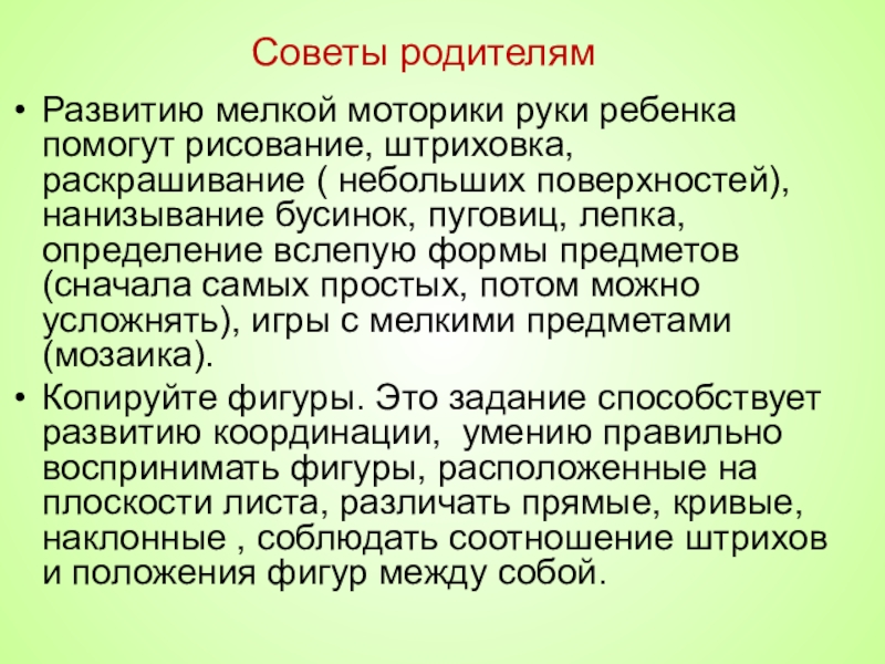 Развивайте мелкую моторику рук через занятия лепкой, конструированием, рисованием, аппликацией.