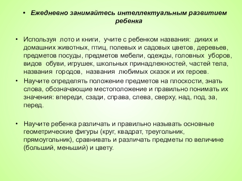 Слайд 40Ежедневно занимайтесь интеллектуальным развитием ребенка