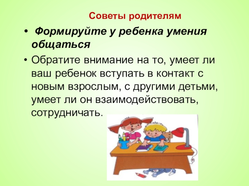ли ваш ребенок вступать в контакт с новым взрослым, с другими детьми, умеет ли он взаимодействовать, сотрудничать.