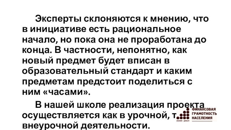 Слайд 5 Эксперты склоняются к мнению, что в инициативе есть рациональное начало, но