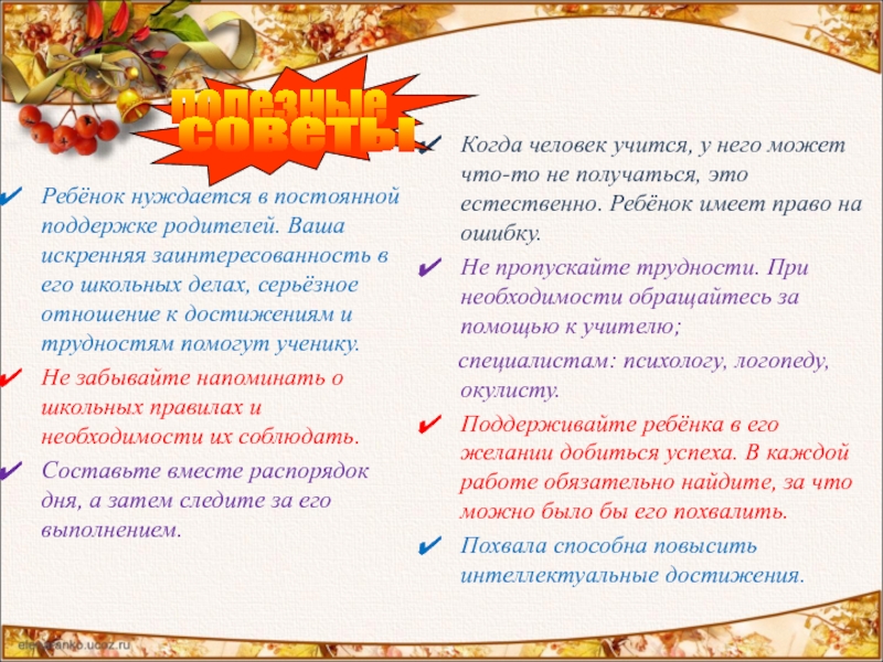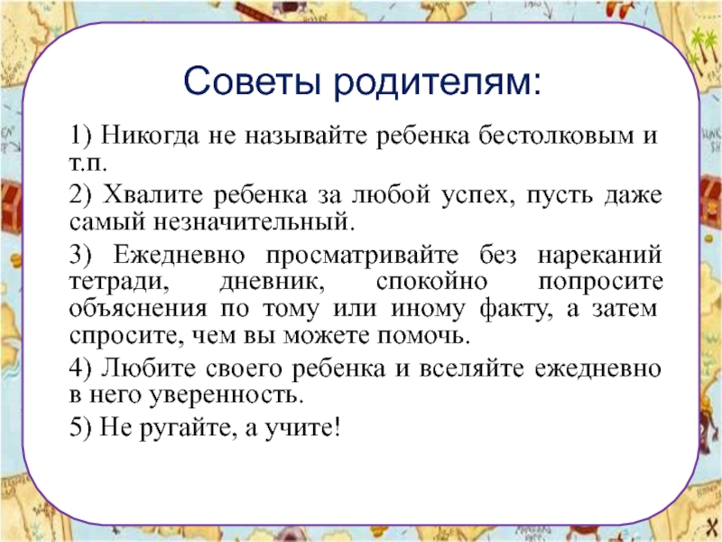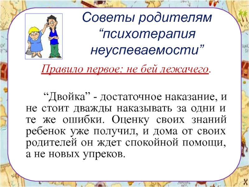 Слайд 30Советы родителям “психотерапия неуспеваемости”