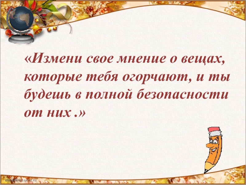 Слайд 2«Измени свое мнение о вещах, которые тебя огорчают, и ты будешь