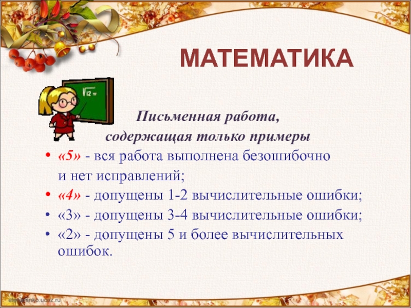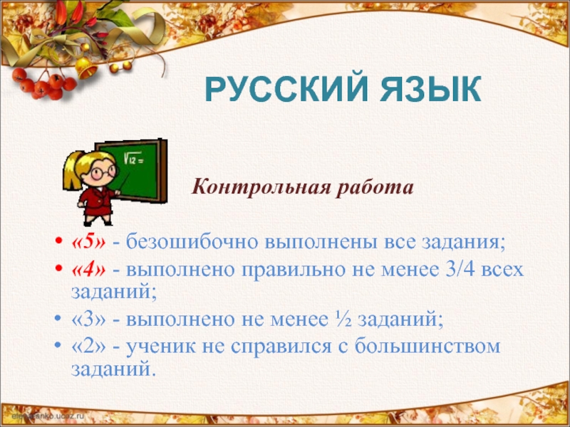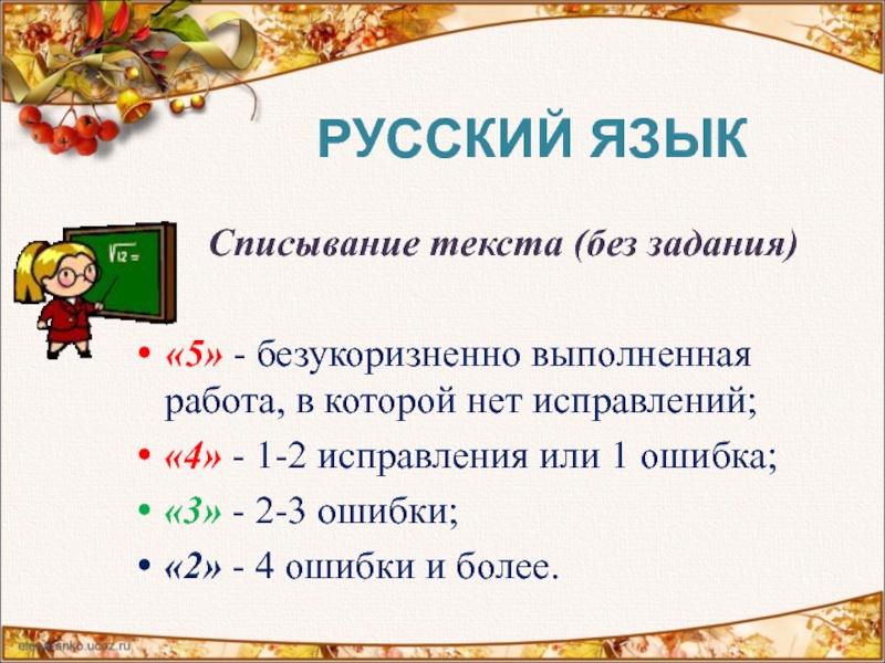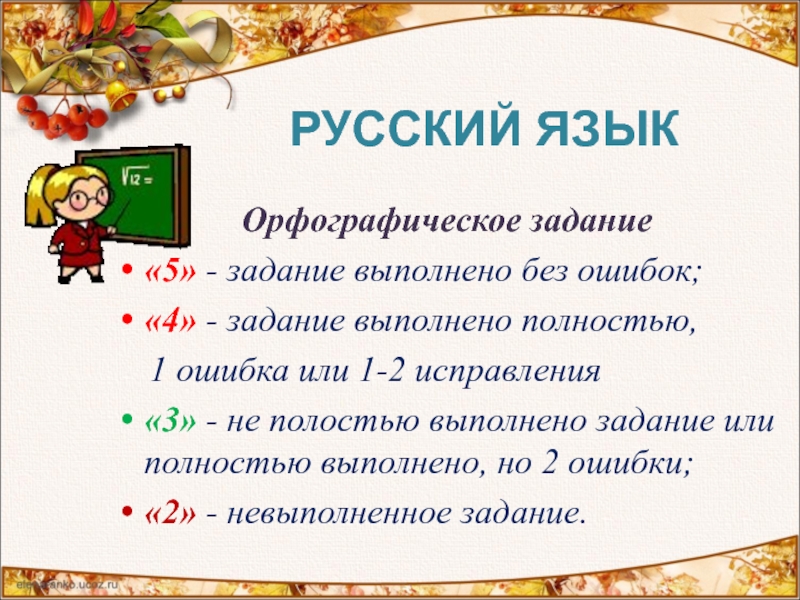 «5» - вся работа выполнена безошибочно и нет исправлений;