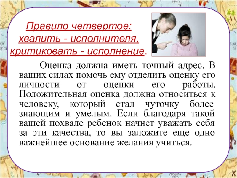 Слайд 33Правило четвертое: хвалить - исполнителя, критиковать - исполнение.