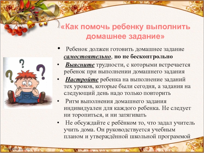 Слайд 21«Как помочь ребенку выполнить домашнее задание»