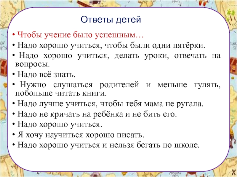 школьных делах, серьёзное отношение к достижениям и трудностям помогут ученику.